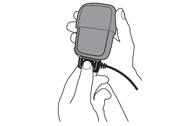 Connect the charging cable provided to the S-PRO sensor as shown, and plug it into a power outlet.