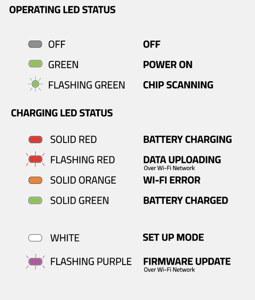 Once the microchip is detected, the device will beep and vibrate and the scanning LED will turn off.