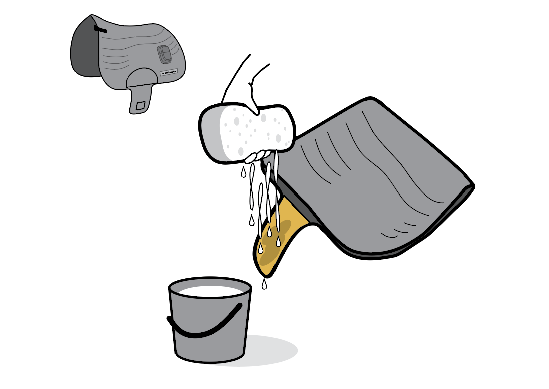 Place the saddle pad liner on the horse as shown. The liner is washable and will protect the saddlepad from wear and tear.