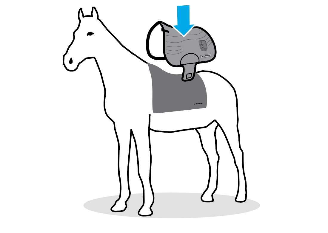 Then place the saddlepad on the horse. Make sure the liner does not block the yellow sensor pad from making contact with the horse’s skin. Then continue to tack-up the horse as normal.