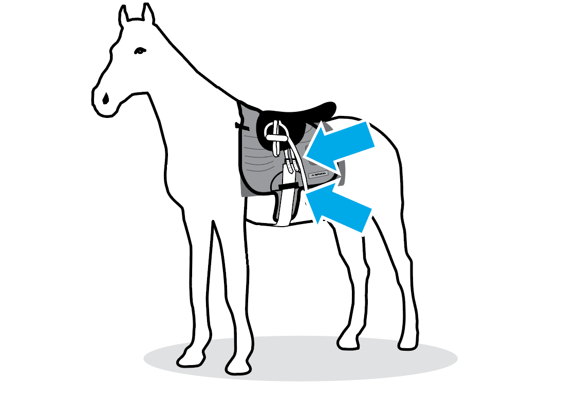 Tighten the girth strap as normal and secure it with the velcro girth loop on the saddle pad.