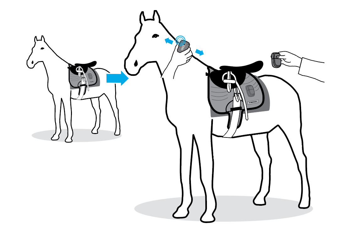 Hold the device as shown with the LED facing you, and move it slowly up and down against the horse’s neck.